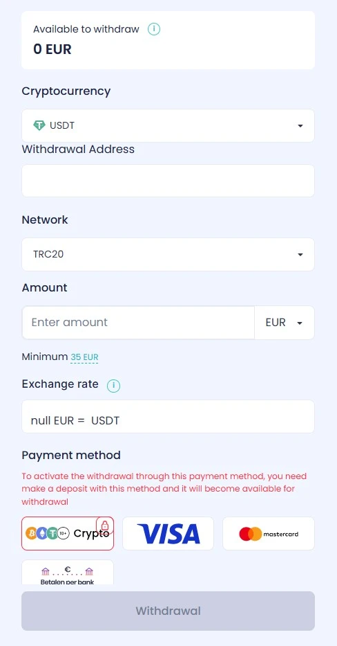 - Snelle opnames via crypto (gemiddeld 7 minuten) en MiFinity, met een duidelijk limietschema.