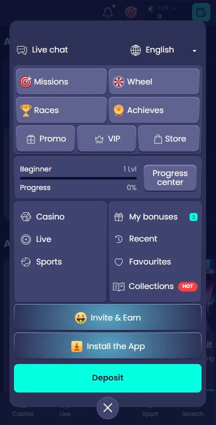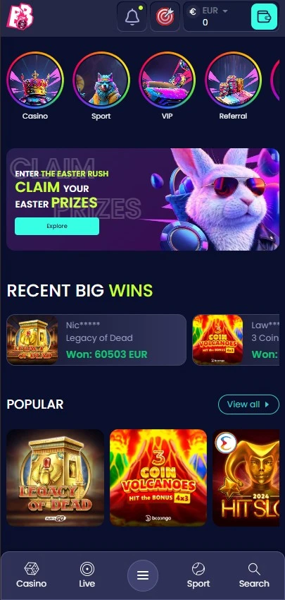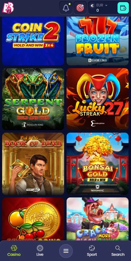 Op BoomsBet Casino mobiel kun je duizenden titels openen, waaronder BoomsBet gokkasten, live dealer-tafels, klassieke tafelspellen en meer. Onze lobby geeft je ook toegang tot bingo, jackpots en eSports, met filtertools waarmee je snel een spel vindt. Als je liever op sport wedt, is onze sportsectie beschikbaar via je browser, zodat je vanuit één plek kunt wisselen tussen casino en sport.